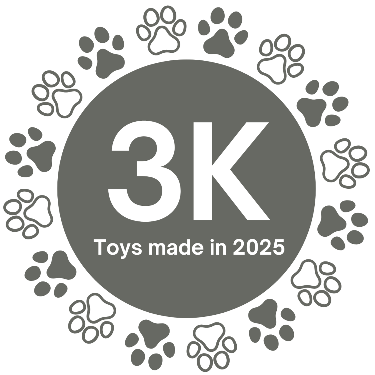 Our toys are created with 100% recycled clothing sourced through donation drives run by volunteers like you! Each year, approximately 92 million tonnes of clothes go to landfills. Our nonprofit aims to minimize textile waste through our eco-friendly dog toys.