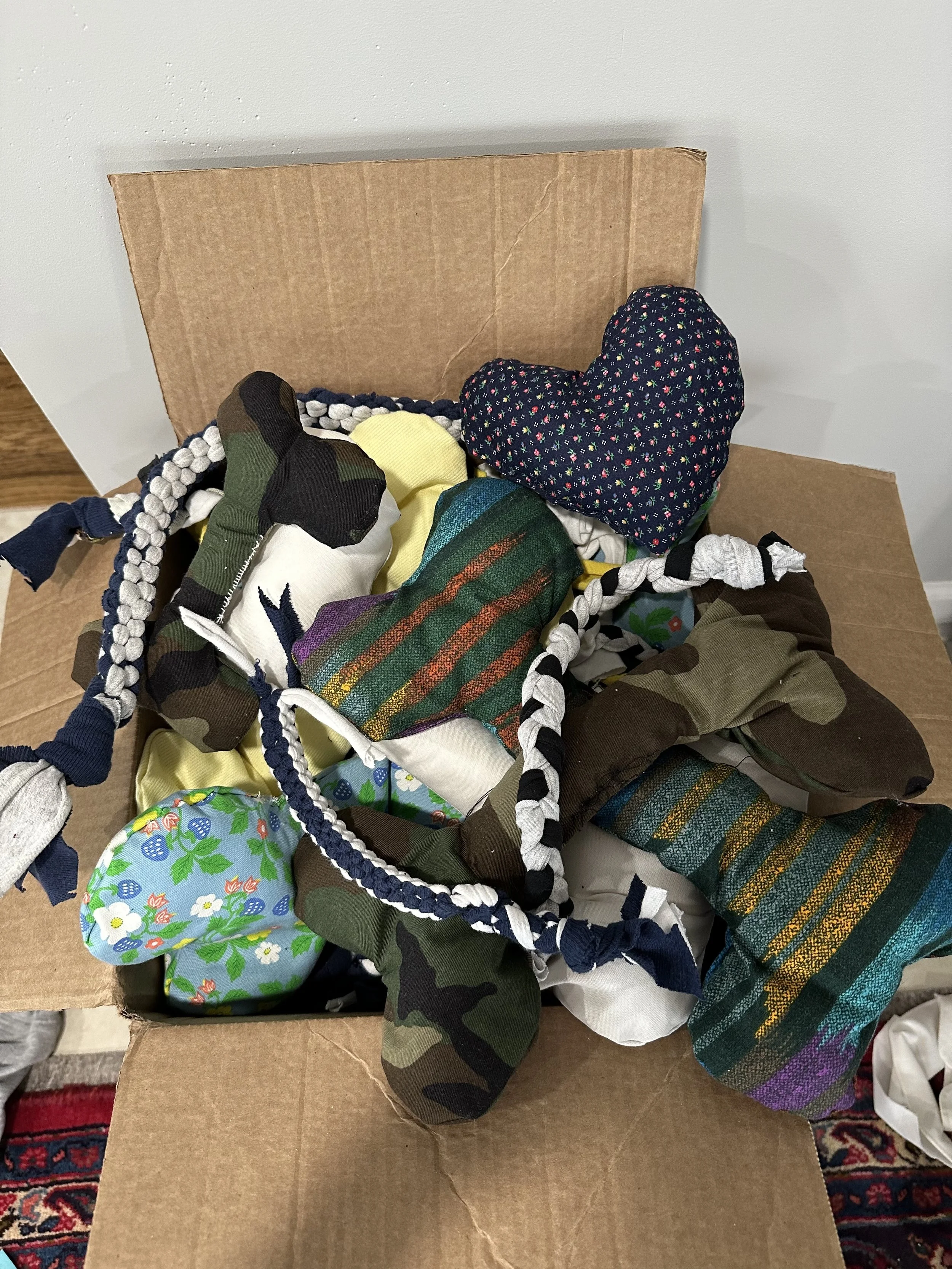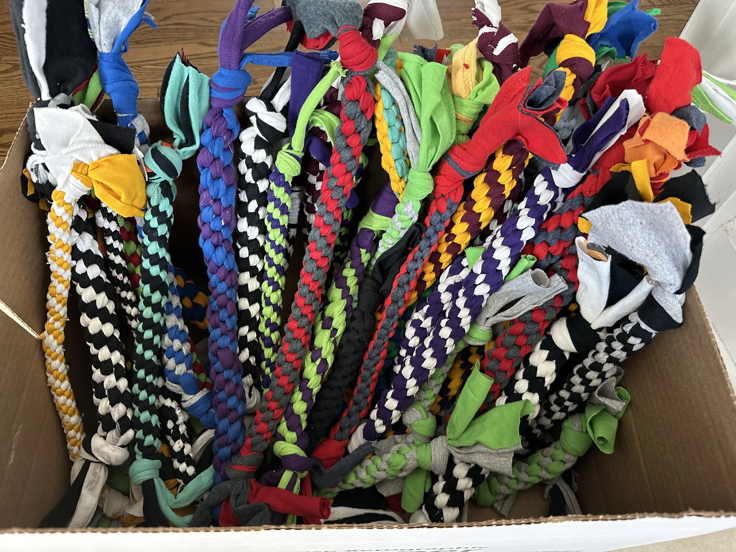 Sixteen volunteers made 48 sturdy tug toys for shelter dogs. Thank you to everyone who participated!